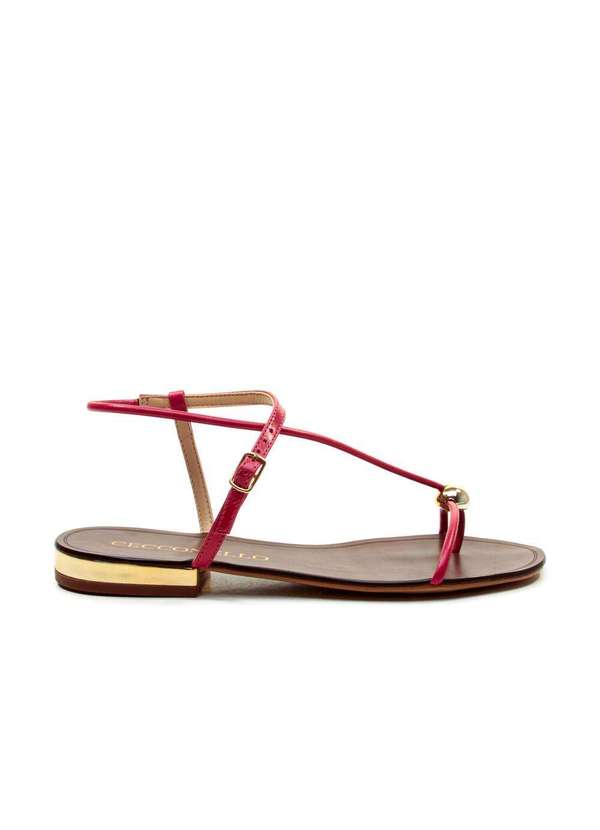 Minimalismo e sofisticação caminham lado a lado nesta sandália rasteira em couro. O modelo apresenta tiras finas que abraçam delicadamente o pé, com aplicação de esfera metálica dourada que adiciona um ponto de brilho elegante. O solado em tom amadeirado com detalhe dourado no calcanhar complementa o design com um toque refinado. Versátil e confortável, é ideal para acompanhar produções urbanas e frescas ¿ do look de verão à composição chic de final de semana. Características Material: Couro Cor: Vermelho ( Fuoco ) Altura do salto: 2,0 cm .