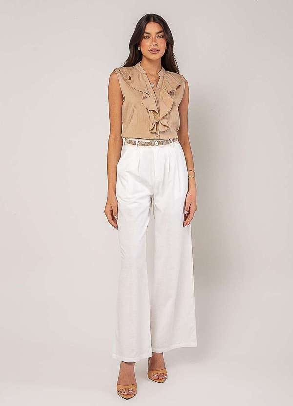 Salvatore Fashion - Regata Alfaiataria com Babados Bege