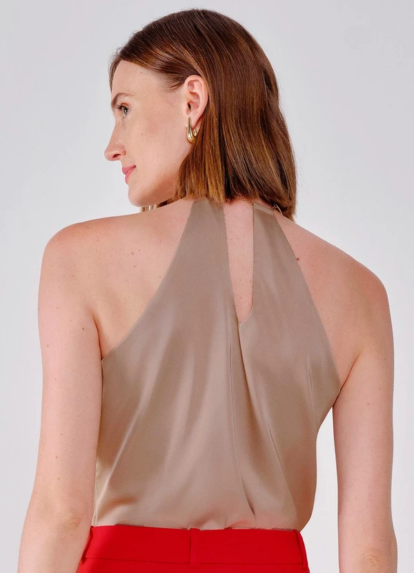 Principessa - Regata Nude com Colar Rígido Dourado na Gola Rochelle