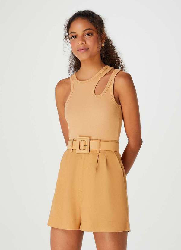 Hering - Regata Cropped Feminina em Ribana Marrom