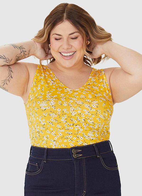 Malwee - Regata Decote V Alça Larga em Viscose Amarelo