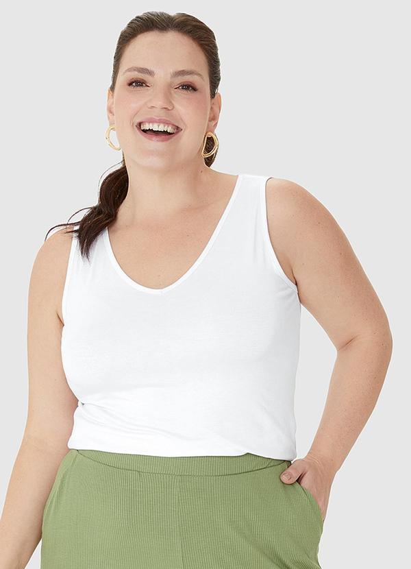 Malwee - Regata Decote V Alça Larga em Viscose Branco