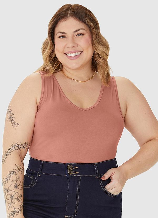 Malwee - Regata Decote V Alça Larga em Viscose Marrom