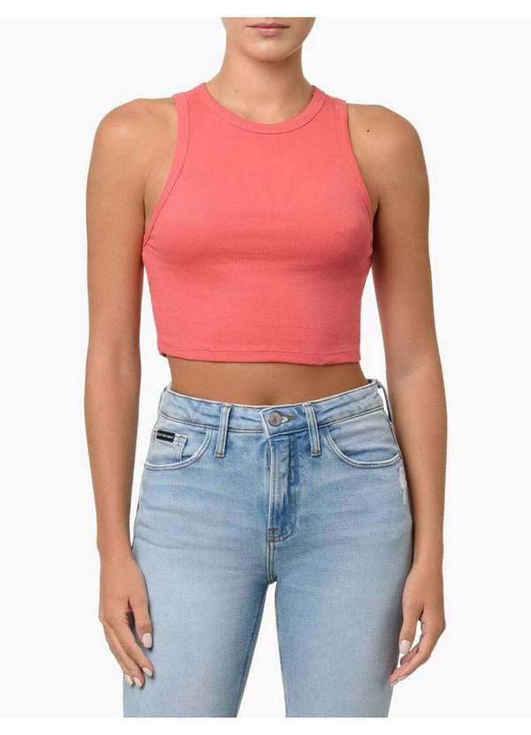 Calvin Klein Jeans - Regata Feminina Cropped Ribana - Melancia Vermelho