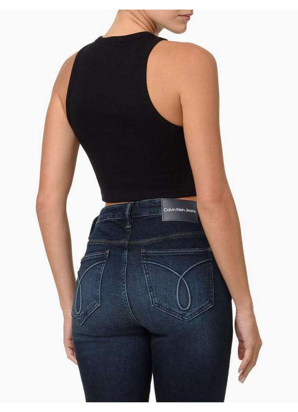 Calvin Klein Jeans - Regata Feminina Cropped Ribana - Preto Preto