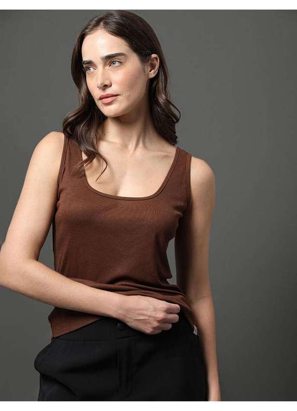 Calvin Klein Jeans - Regata Feminina Decote Quadrado Calvin Klein Jeans - Marrom Marrom