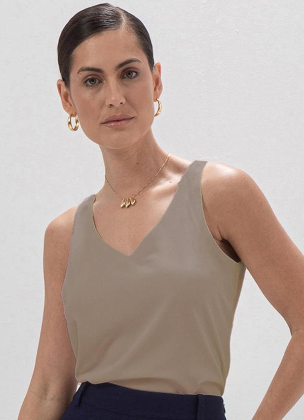 Principessa - Regata Feminina Decote V Bege Luma