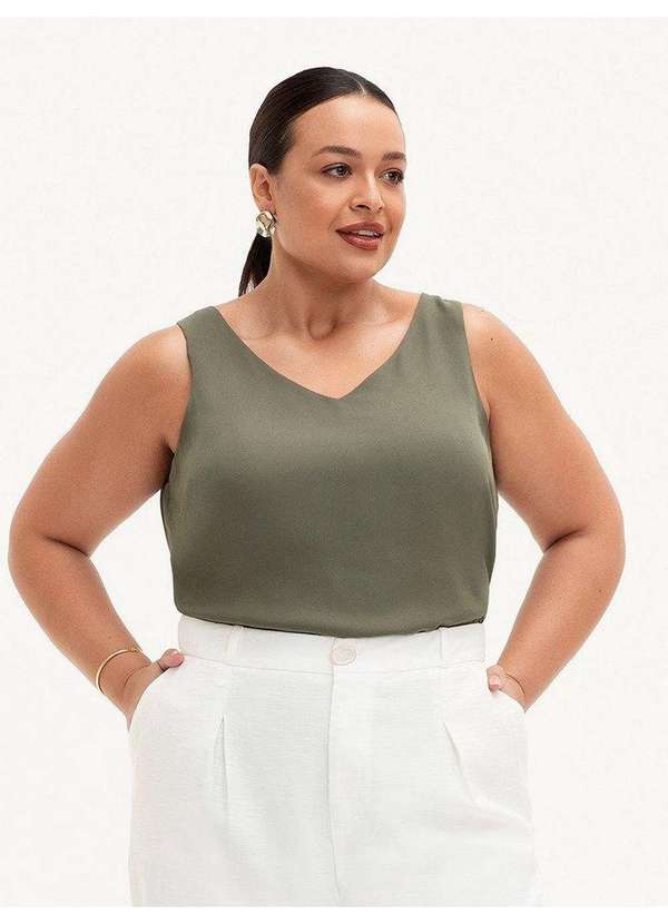 Principessa - Regata Feminina Decote V Plus Size Verde Oliva Sinara