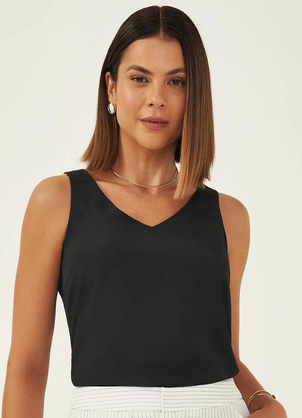 Principessa - Regata Feminina Decote V Preta Maddie