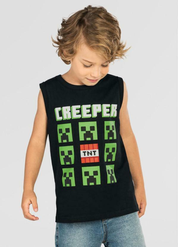 Brandili - Regata Infantil Unissex Minecraft Preto