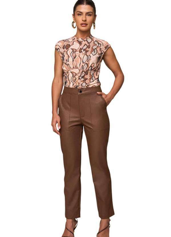 Regata Lado Avesso Franzida Marrom Cobra produzida com decote redondo, detalhe franzido cintura, é a peça perfeita pra várias combinações. Além da linda estampa animal cobra.Composição: 96% viscose e 4% elastano.