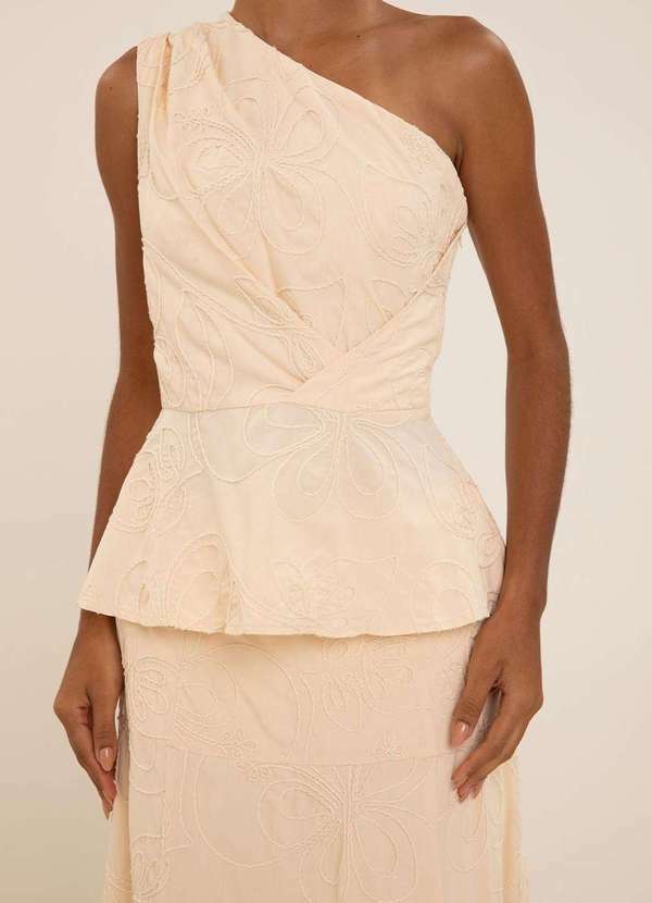 Maria.valentina - Regata Maria.Valentina Ajustada um Ombro Só Padrão Bege Bege