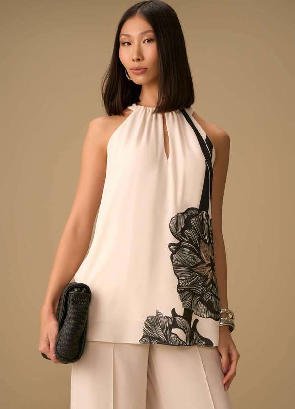 A regata solta em crepe bege da Maria Valentina é o toque de sofisticação que seu guarda-roupa precisa. Com um design que homenageia o renascimento, suas cavas francesas alongadas trazem elegância e liberdade de movimento. Ideal para ocasiões casuais ou eventos mais sofisticados, combina perfeitamente com uma calça de alfaiataria ou uma saia midi. Complete o look com acessórios dourados e uma bolsa estruturada para um visual marcante.