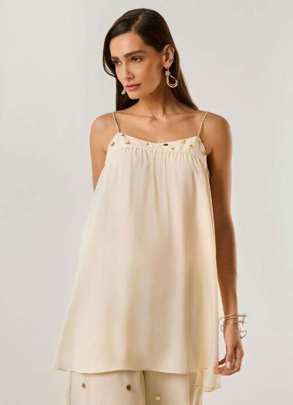 Maria.valentina - Regata Maria.Valentina Solta Decote Quadrado Alongada Bege Bege