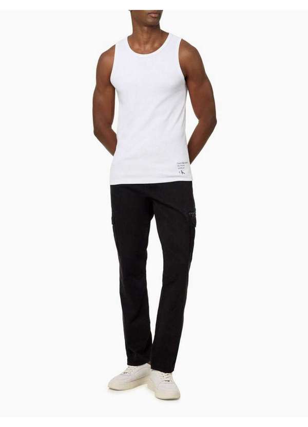Calvin Klein Jeans - Regata Masculina Ribana Logo - Branco Branco