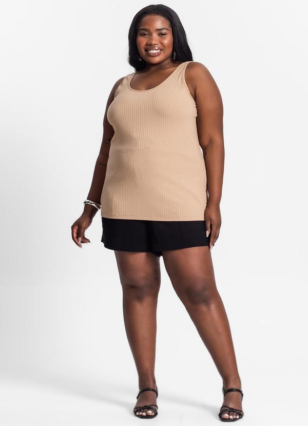 Secret Glam - Regata Plus Size em Ribana Canelada Marrom