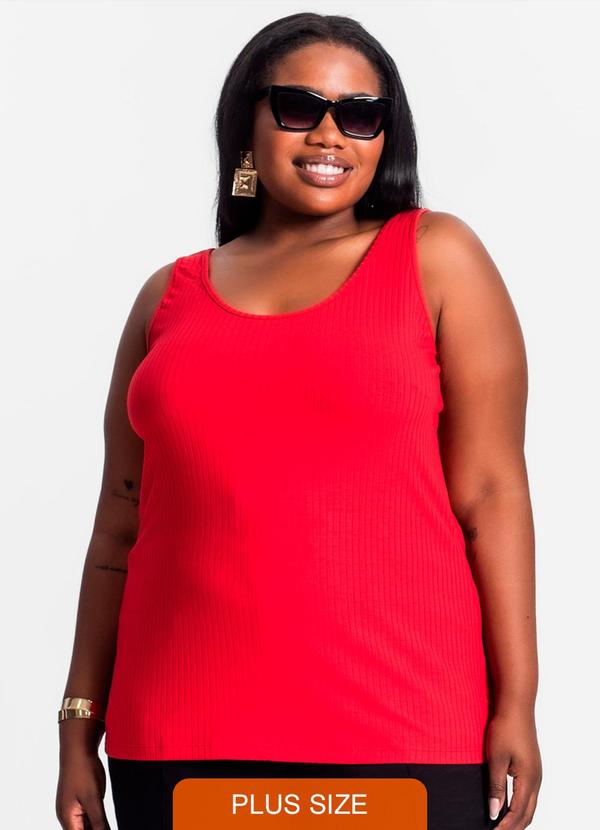 Secret Glam - Regata Plus Size em Ribana Canelada Vermelho