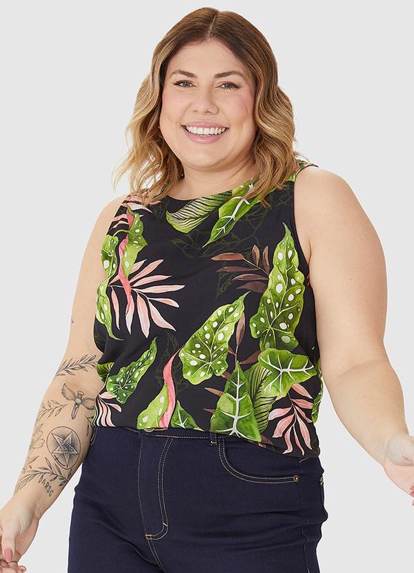 Malwee - Regata Plus Size Estampada em Viscose Preto