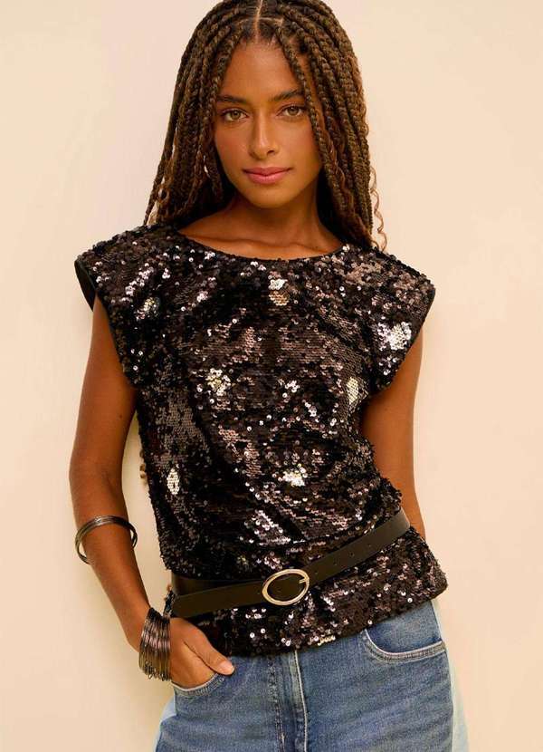 Desperte a fashionista que há em você com a Regata Zinco Ajustada Decote Careca Padrão Preto. Esta peça irresistível, feita em poliéster com toque de elastano, traz o brilho dos paetês, garantindo um visual impactante e sofisticado. Ideal para um look cheio de atitude, pode ser combinada com saias midi ou calças de alfaiataria, além de acessórios dourados para um toque extra de glamour. Parte da Coleção Aurora, é perfeita para transitar do dia para a noite, seja em um jantar especial ou em uma festa animada. Vista-se de confiança e deixe sua personalidade brilhar!