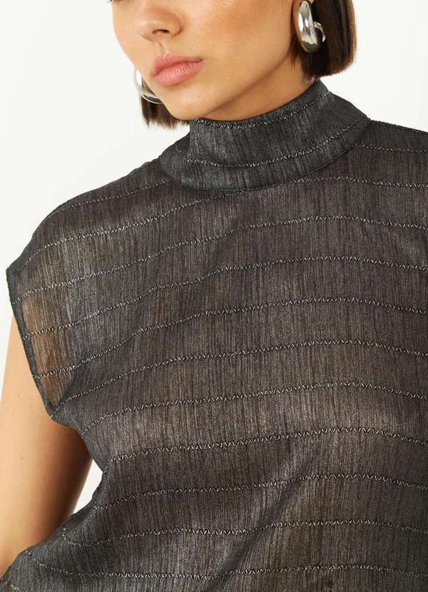 Zinco - Regata Zinco Ajustada Gola Alta Padrão Preto Preto