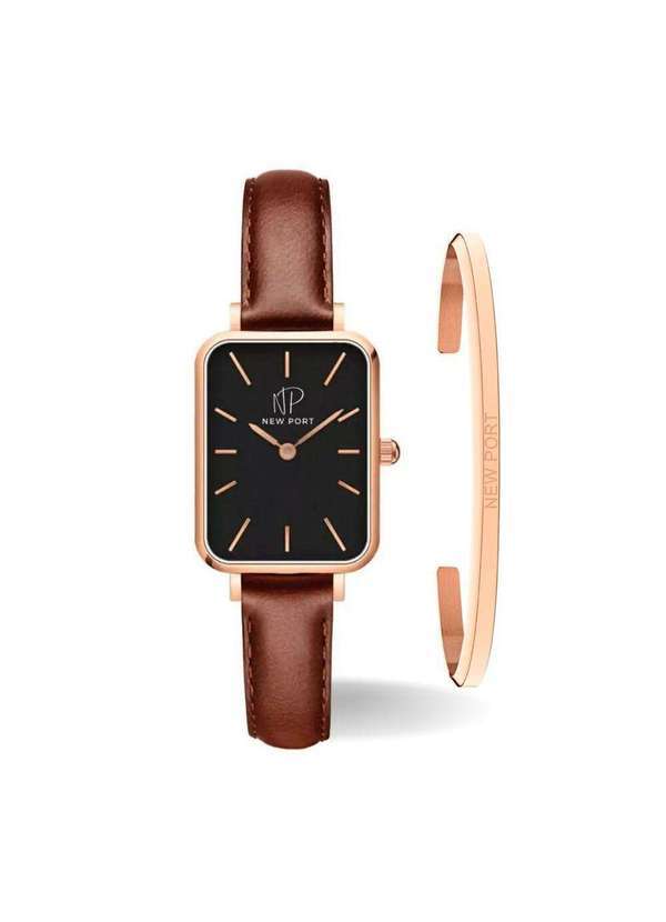 New Port - Relógio Feminino Quadrado Marrom Elegante New Port com Unica