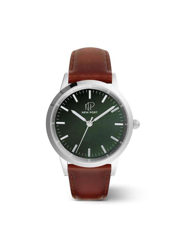 New Port - Relógio Masculino Couro Marrom Analógico Casual Elegante Unica