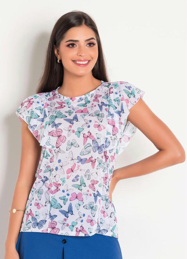 Outlet - Blusa Estampa Borboleltas Moda Evangélica