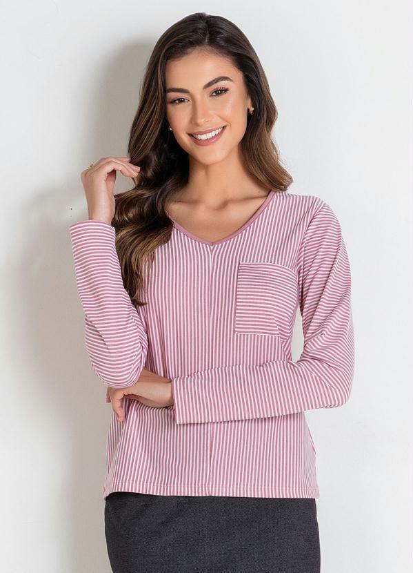 Outlet - Blusa Listrada Rosa com Bolso Moda Evangélica