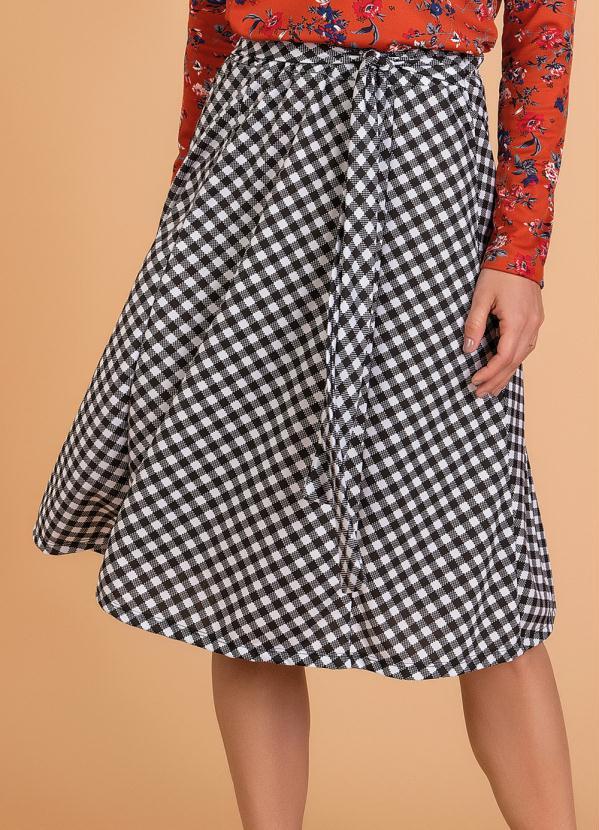 Rosalie - Saia Evasê com Faixa Xadrez Moda Evangélica