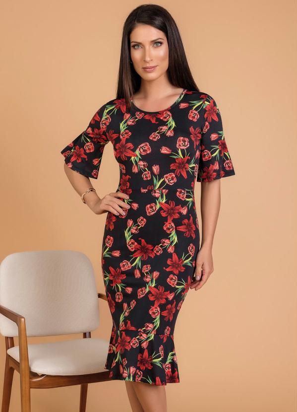 Rosalie - Vestido Floral Dark Moda Evangélica
