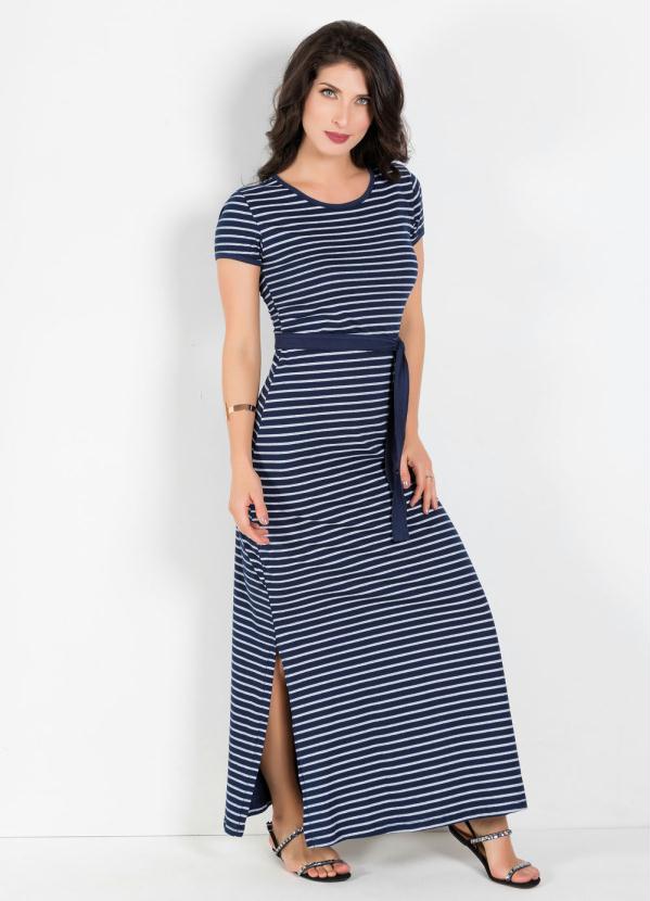 Rosalie - Vestido Longo Listrado Moda Evangélica