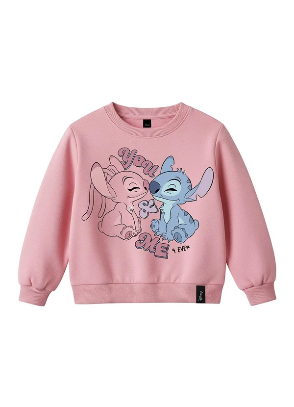 Malwee Kids - Blusão em Moletom Stitch® Rosa Claro