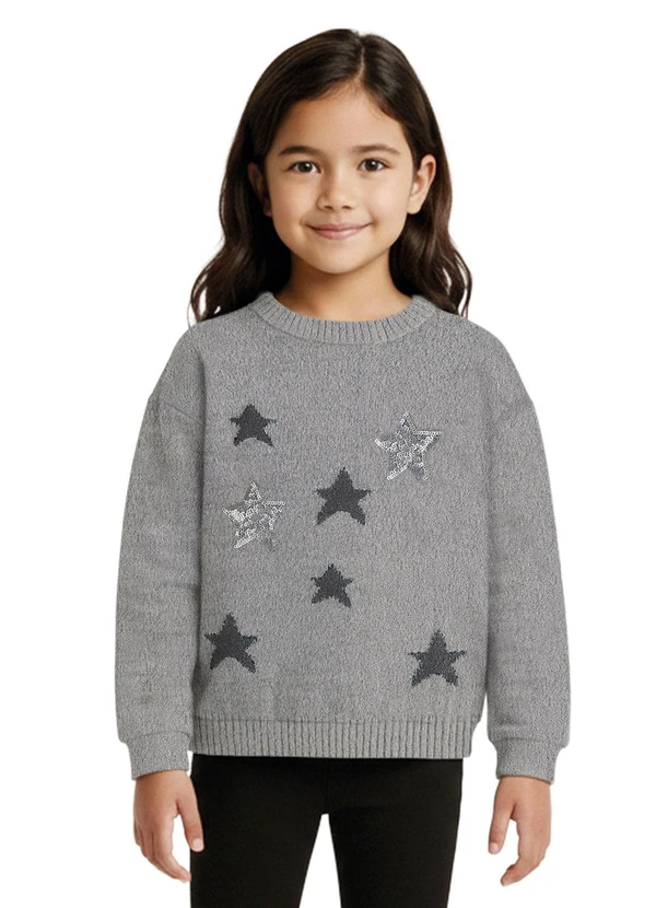 Malwee Kids - Blusão em Tricot Estrelas com Bordadas Cinza