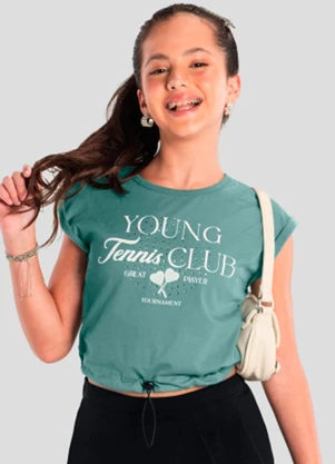 Blusa Cropped Teen Menina com Strass Verde