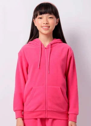 Jaqueta Juvenil Fleece com Capuz Bolsos Rosa