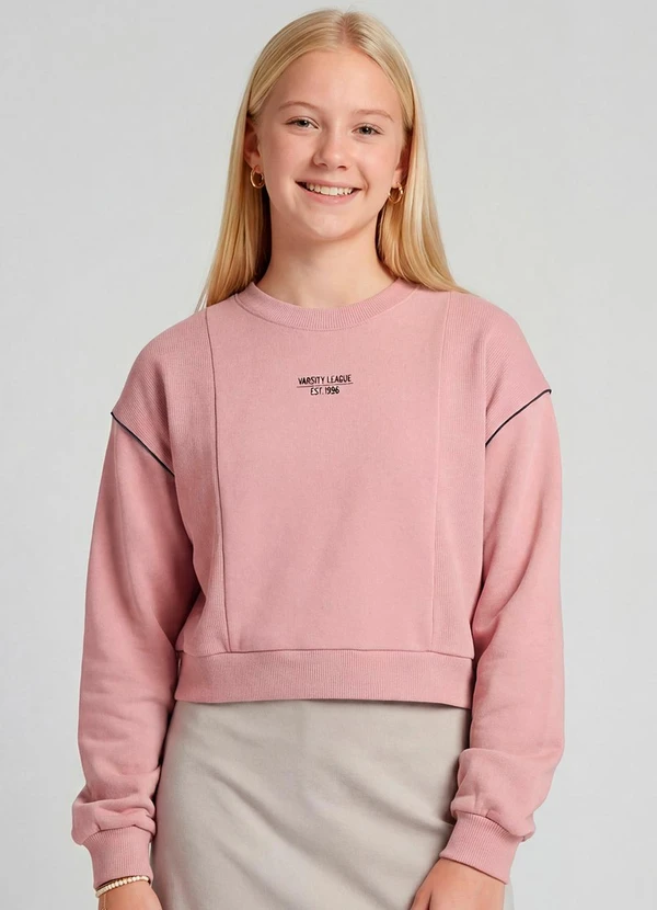 Minty - Blusão Moletom e Ribana com Estampa Rosa
