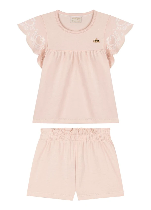 Milli e Nina - Conjunto Blusa e Shorts em Cotton Linho Rosa