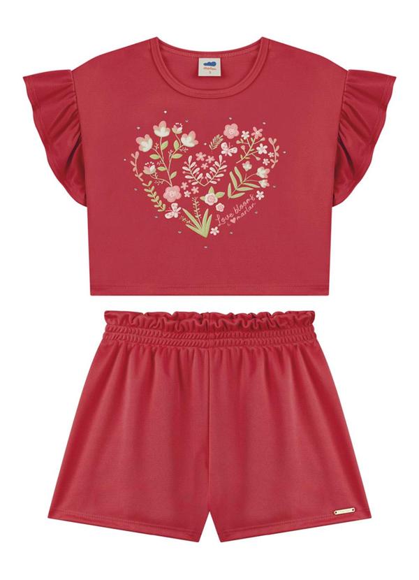 Marlan - Conjunto Blusa e Shorts em Newtech Vermelho
