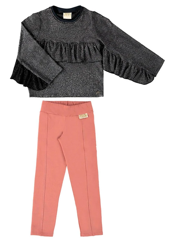 Milli e Nina - Conjunto Blusa Malha e Calça Moletinho Preto