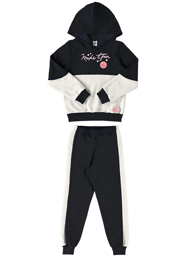 Marlan - Conjunto Blusão e Calça Moletom e Boucle Preto
