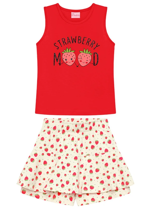 Duduka - Conjunto Infantil Regata e Short Saia Vermelha