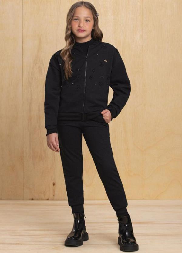 Milli e Nina - Conjunto Jaqueta e Calça em Malha Tricot Preto