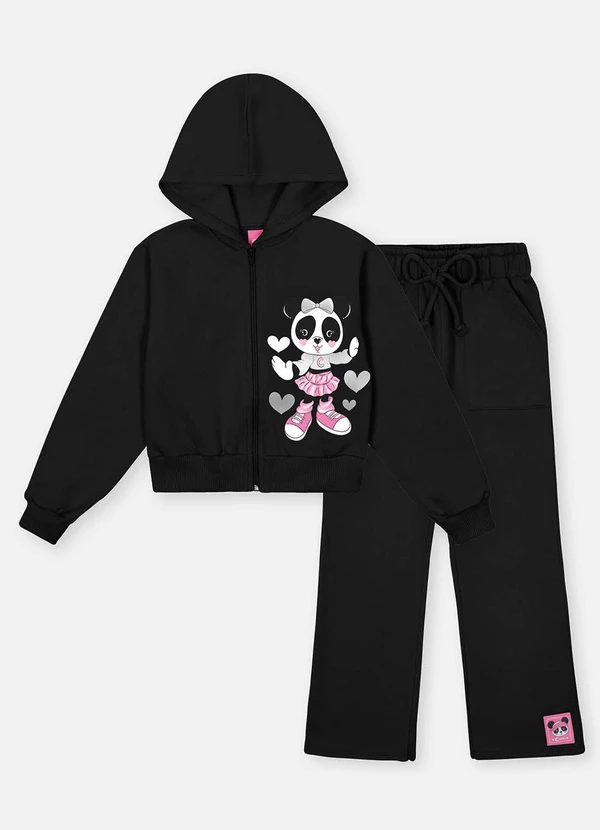 Abrange - Conjunto Longo Infantil Menina Panda Lover Preto