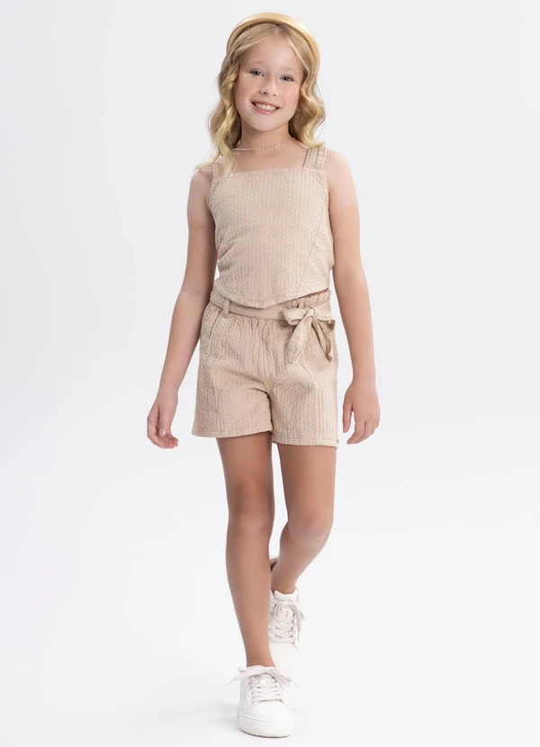 Alakazoo - Conjunto Sarja Menina com Blusa e Shorts Bege