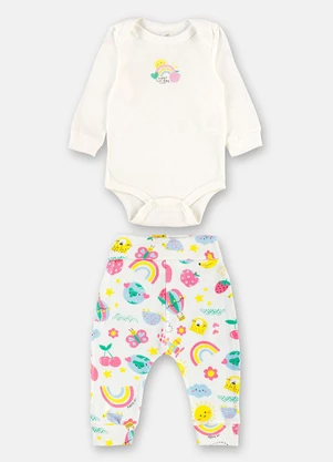 Conjunto Pijama Blusa Manga Longa e Calça Bege