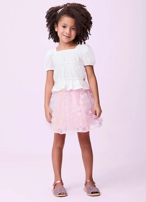 Momi - Conjunto de Tule com Flores 3d Branco - MOMI