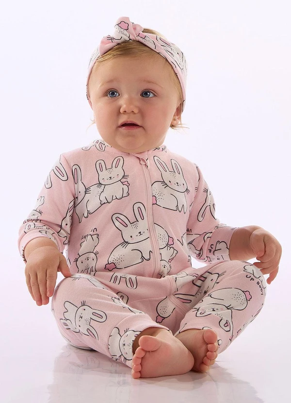 Up Baby - Macacão Bebê Menina Zíper Estampado