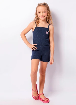 Macaquinho Jeans Infantil Alcinha Recortes Azul