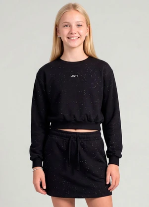 Minty - Conjunto Blusão com Saia Moletom Glitter Preto - MINTY