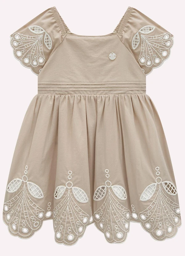 Milon - Vestido Infantil Menina Bordado Amendoa